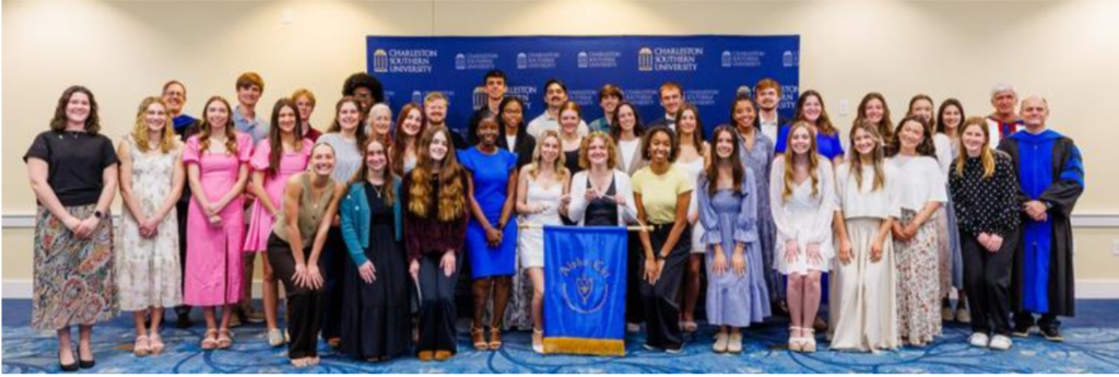 Dr. Michael Wilder, vice president for academic affairs, was the keynote speaker for the ceremony honoring the 55 students inducted into the South Carolina Zeta Chapter of Alpha Chi. The achievements of these scholars indicate they understand and uphold the ideals of Alpha Chi – truth and character.