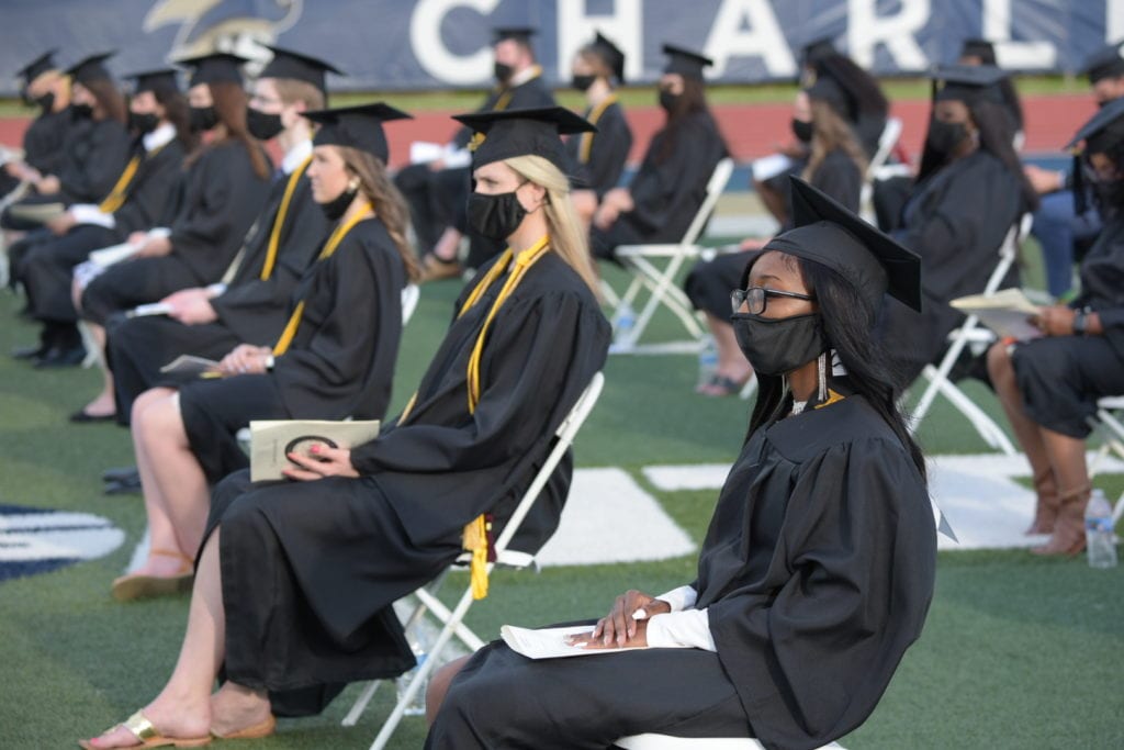 2021 Charleston Southern graduates walk the stage on May 1, 2021. Photo by Richard Esposito