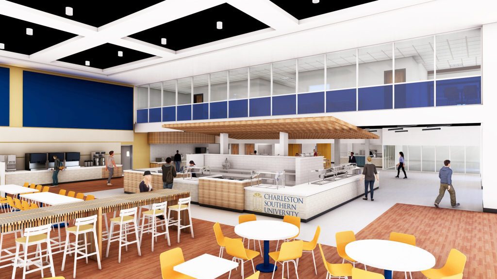 Charleston Southern University announces a $5 million renovation of the campus Dining Hall and Student Center. The project, scheduled for May to August 2025, will heavily modernize the 18,000-square-foot facility providing updated technology, varied and stylish seating, sustainability, themed food stations, and expanded menu.