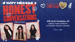 Rising Christian pop artist Katy Nichole is heading out on the road this spring with her Honest Conversations Tour, bringing an evening of authenticity, vulnerability, and high-energy hope to audiences nationwide. Joined by special guest, Claire Leslie, the tour will make a stop at our very own Lightsey Chapel on May 2!