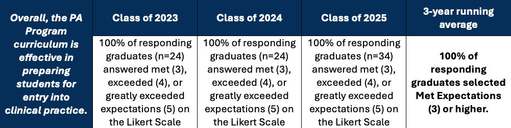 - Q1-Overall, the PA Program curriculum is effective in preparing students for entry into clinical practice.
