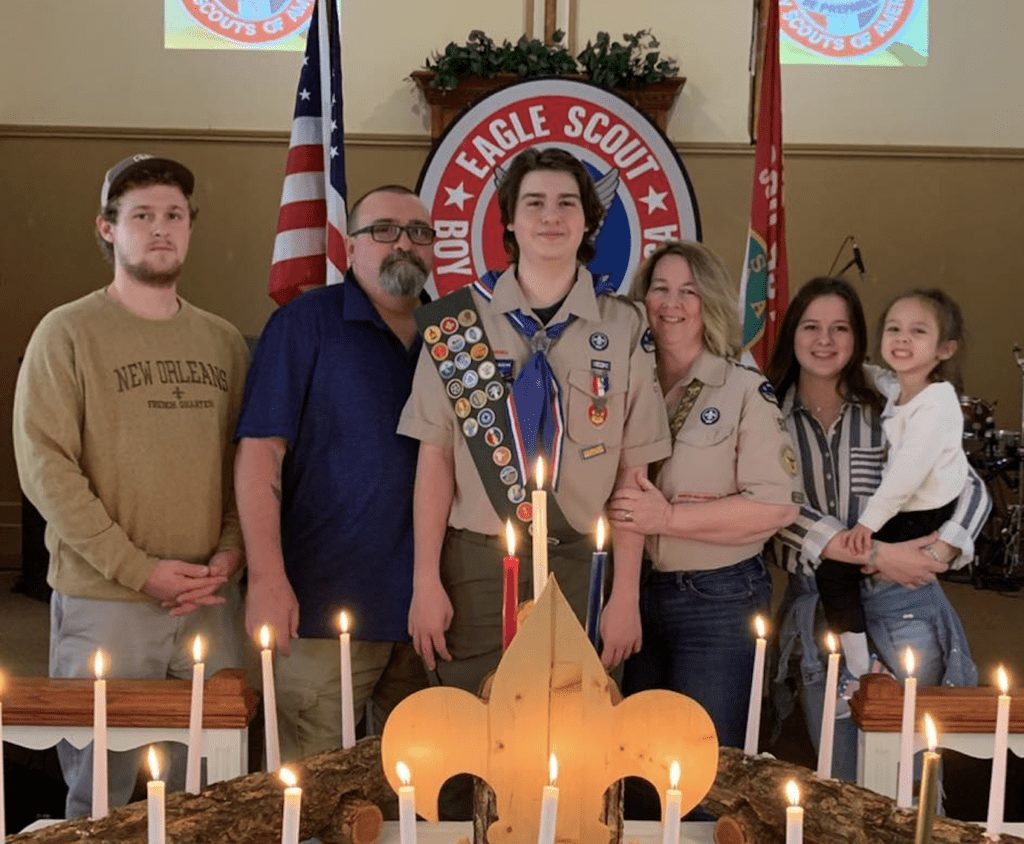 Cate Caroll '91 and her family celebrate her son’s Eagle Scout rank. Photo provided
